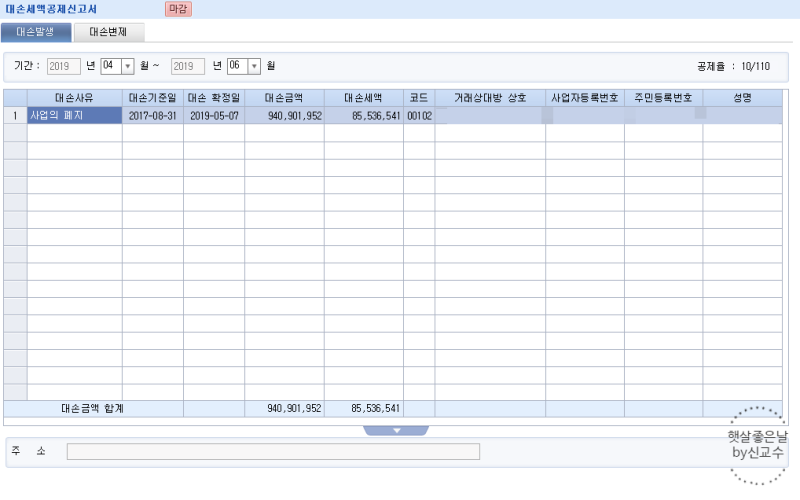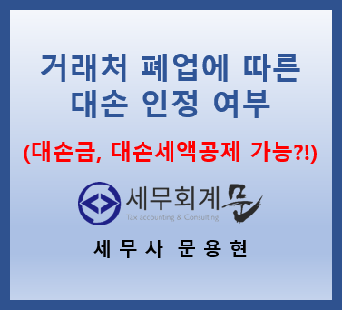 더욱이 단순히 채무자가 문을 닫는다고 해서 무조건 대손상각과 대손세액공제를 탕감하는 것은 불가능하며, 실질적 이익이 없다는 것이 객관적으로 입증된다면 대손상각과 대손세액공제를 받을 수 있다. 공소시효가 만료되지 않은 경우에도 세금 공제가 가능합니다.채권추심대행 회사명 : 제이엠(JM)신용정보(국가공채추심기관) 전화 : 02-6219-1073 취급 : 미수금, 공사비, 용역비, 판결문, 공증서류 주소 : 서울특별시 방배로 56 , 서초구 JM신용정보 / 전략연구센터 1~2층