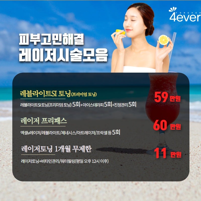 마지막으로 주월동레이저미백과 기미레이저 가격정보를 소개해드리려고 합니다! 저희 에버스는 기미레이저 특별할인 예약을 위해 평일 친구방문을 진행하고 있으니 여유로우신 분들은 이번 기회를 놓치지 마세요!